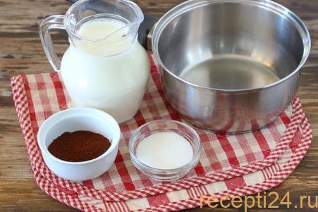 Для начала приготовьте все ингредиенты и посуду для варки какао.