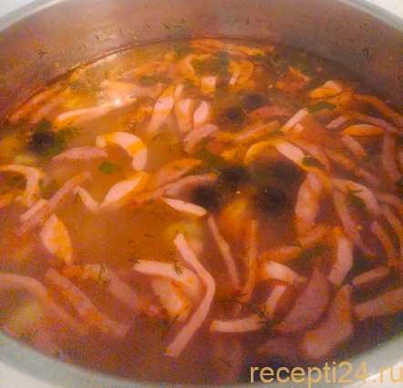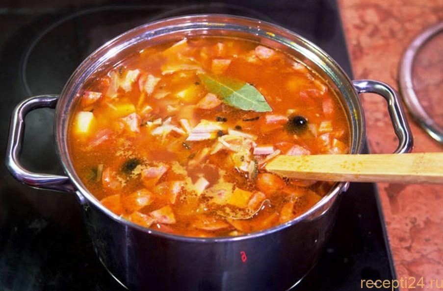 Некоторые хозяйки кладут в суп каперсы, которые представляют собой почки цветов куста. У них интересный вкус – острый, терпкий, кисловато-соленый. Солянку рекомендуется варить в кастрюле с толстыми стенками, тогда она получится будто тушеная.
