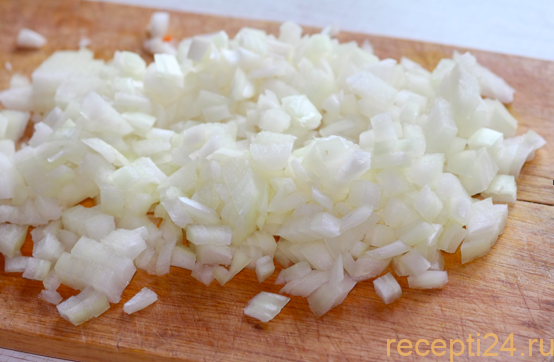 Головку лука нарезают на кубики.