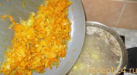Добавить поджарку и варить еще 2 минуты.