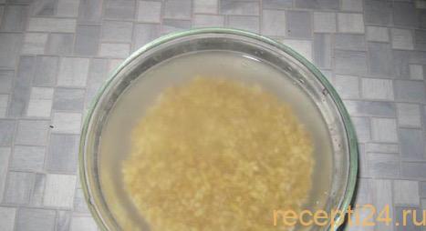 Пока мясо варится, можно подготовить перловку. 4 ст.л. крупы нужно хорошо промыть и оставить в емкости с водой, покрывающей ее на 2 пальца на 10-15 минут.
