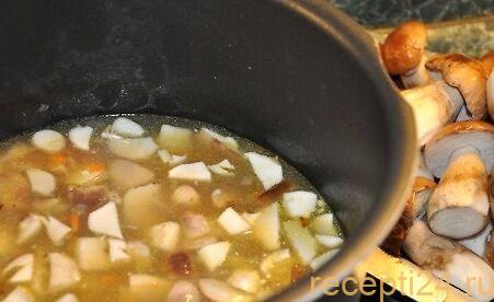 Чтоб сократить время приготовления супа, грибы можно предварительно обжарить. Потом их нужно будет просто перенести в кастрюлю и добавить остальные продукты.