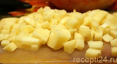 Картофель очистить и нарезать небольшим кубиком.
