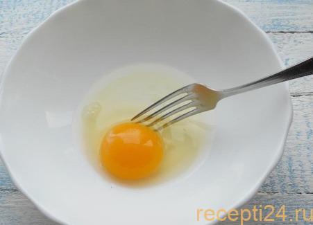 Добавлять ее много не нужно, так как в следующих шагах тоже будут специи. В глубокую тарелку разбивают яйцо, добавляют немного соли и перца.