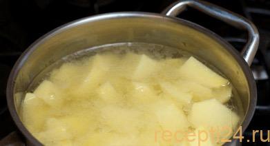 По истечению 30 минут кладем картофель к бульону. Провариваем его на медленном огне 15 минут.