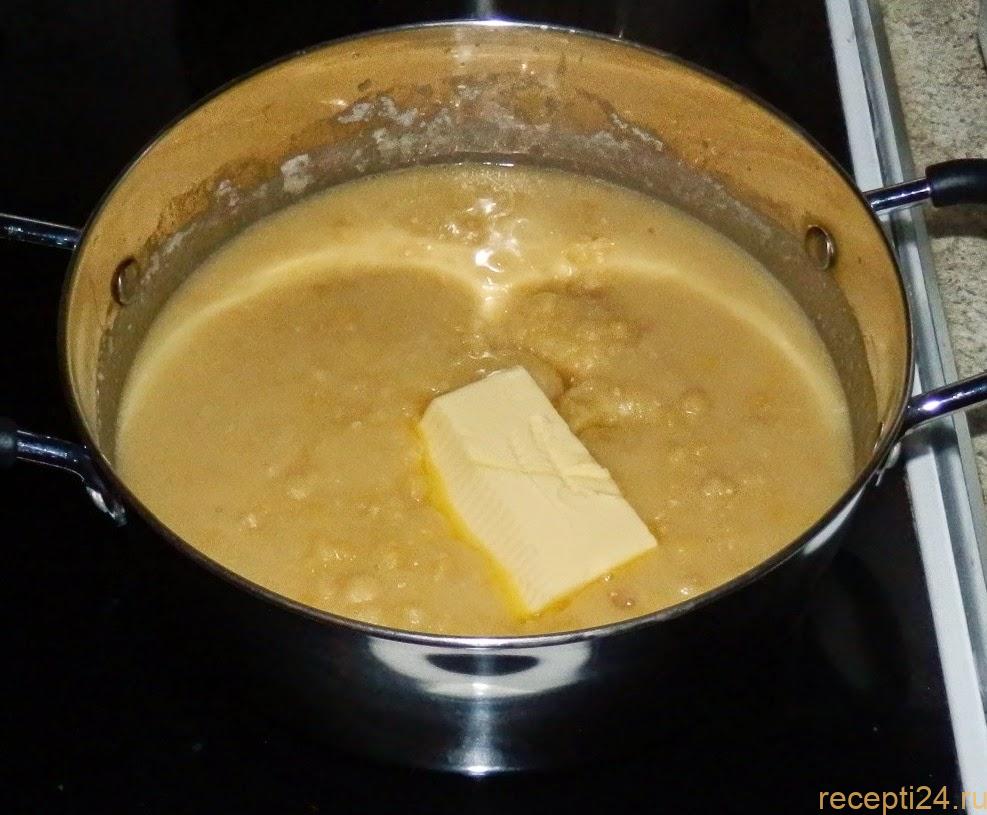Готовая каша снимается с огня. В нее добавляется сливочное масло, зажарка или другие ингредиенты по вкусу.