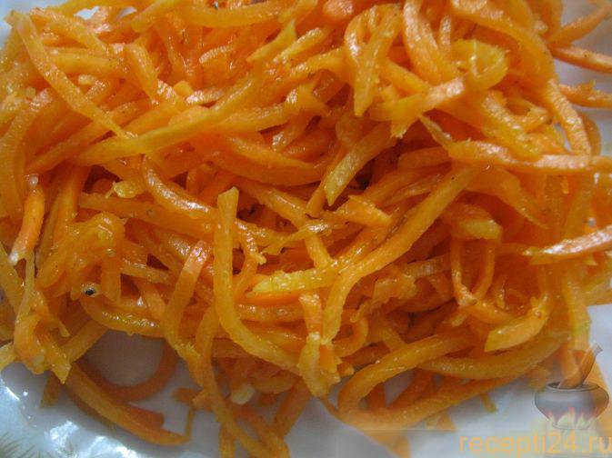 Морковь лучше натереть на терке. Так же можно воспользоваться покупной корейской морковью.