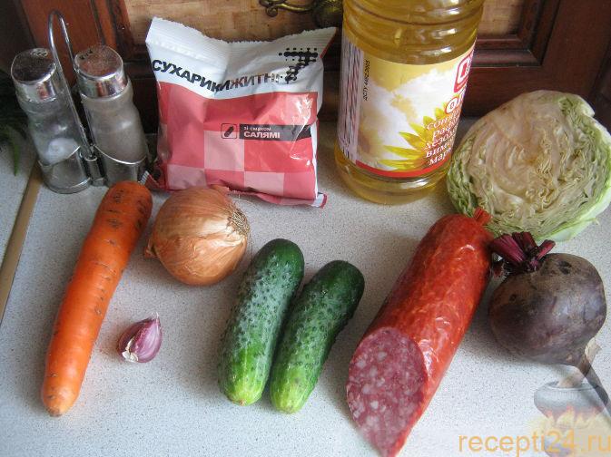 Перед нами все продукты из которых мы сделает вкусный салат!