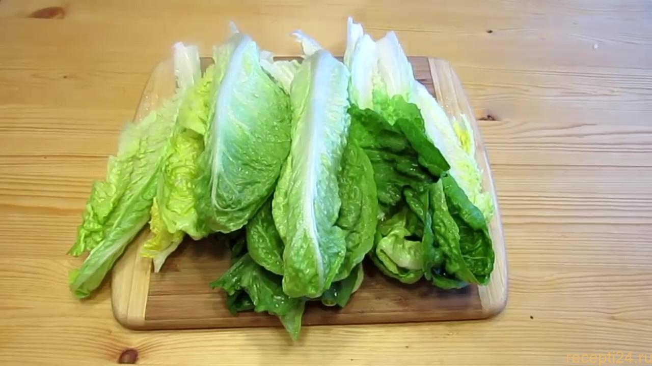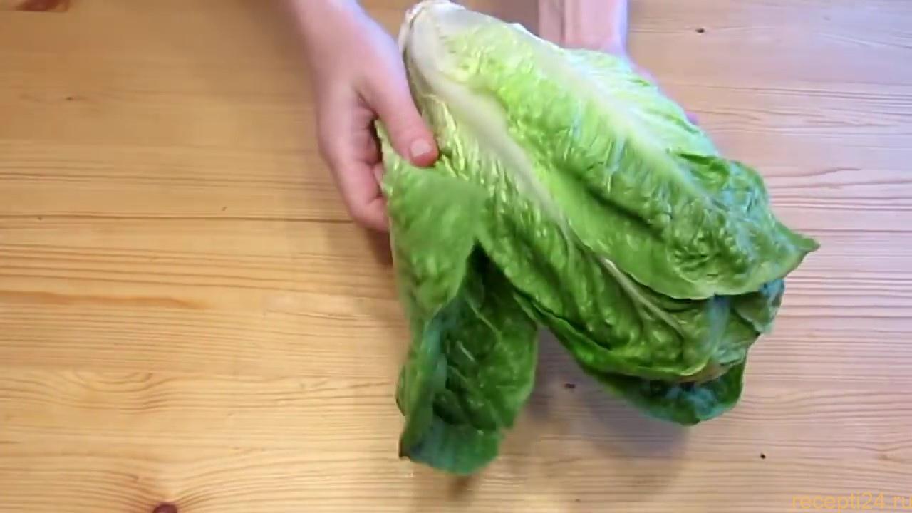 И так для нашего рецепта нам понадобиться салат ромэн или римский салата, если их нет в продаже подойдет салат айсберг. Из салата айсберг получиться тоже очень вкусно.