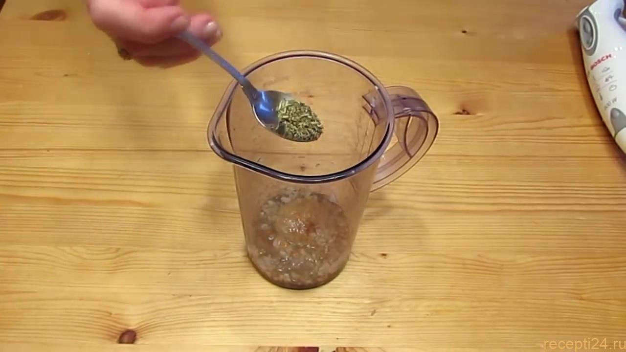 Лук и чисток измельчаем в блендере и далее по очереди начинает добавлять ингредиенты, которые придадут вкусовые оттенки.