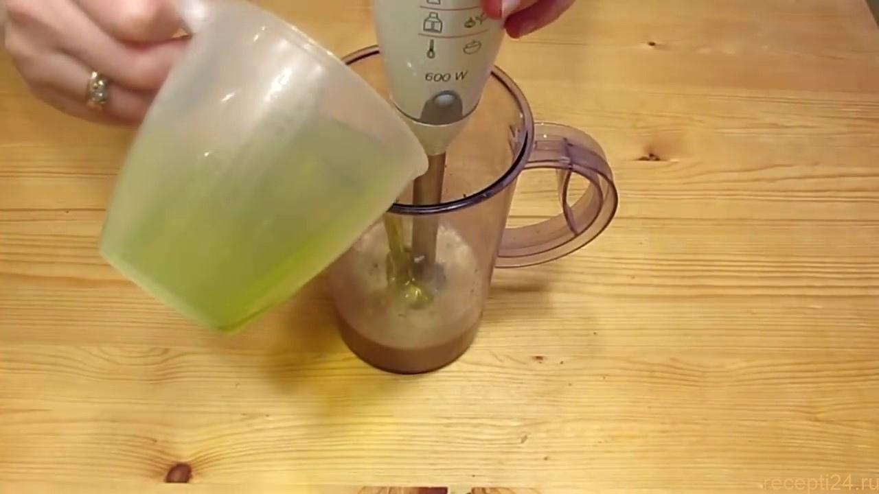 160 мл. растительного масла, добавляем и аккуратно перемешиваем блендером.