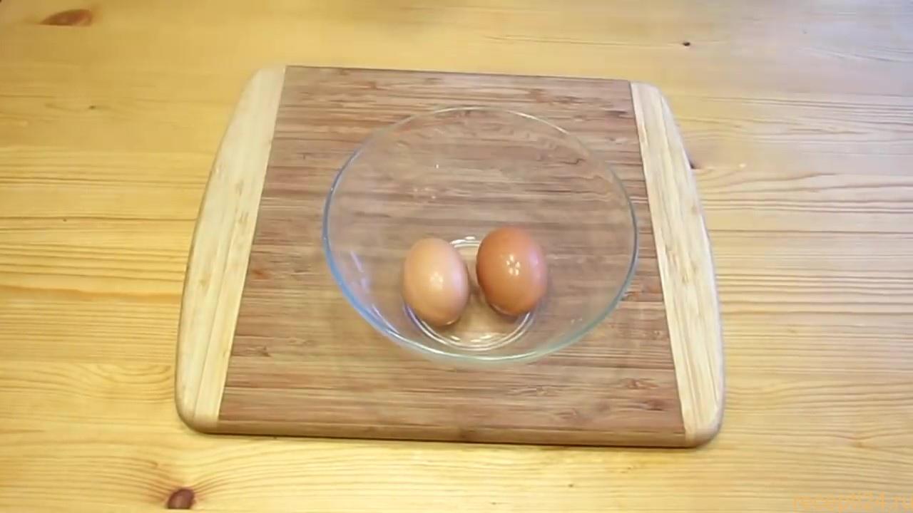 Теперь начинает готовить соус для салата цезарь, нам понадобиться 2 средних куриных яйца.