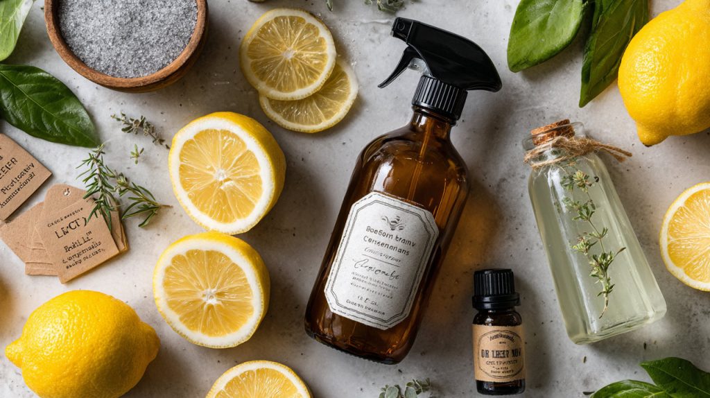 - Использование натуральных альтернатив, таких как уксус, сода, лимонный сок и эфирные масла, для очистки различных поверхностей.