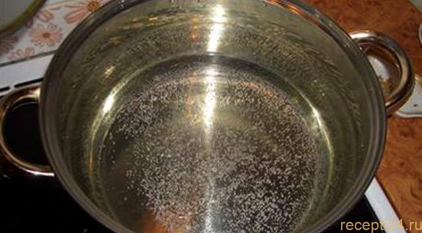 Набрать в кастрюлю воды чуть больше половины и поставить на огонь. Соль по вкусу.