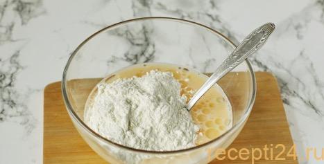 Когда смесь готова и в ней не видно, отдельно плавающего яичного белка или достаточно крупных капель растительного масла. Можно понемногу вводить заранее просеянные 500 г муки. Внимание! Муку нужно просеивать не для того, чтобы обогащенное кислородом тесто лучше подходило, что часто необходимо для выпечки. Здесь стоит другая задача. Просеянная мука намного быстрее соединяется с другими компонентами, и тесто будет раньше готово к работе.