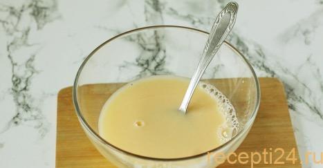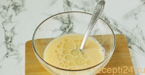К 200 мл теплой воды, добавить 0,5 ч.л. соли и 1 яйцо. Перемешать смесь вилкой до получения однородной массы.