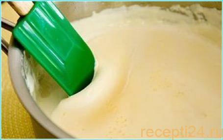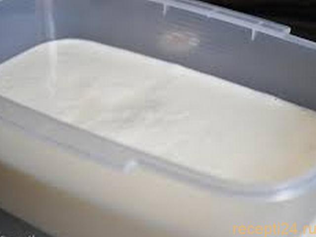 - Готовую смесь желательно разделить на две примерно одинаковые части. Так она заморозится быстрее и лучше. Ведь мы готовим пломбир дома, без использования профессиональных морозильных установок.