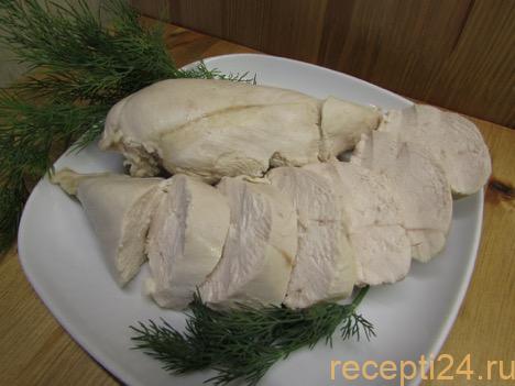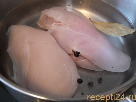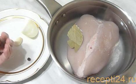 - Если варите мясо для салата или гарнира, класть филе необходимо в кипящую, слегка подсоленную воду.