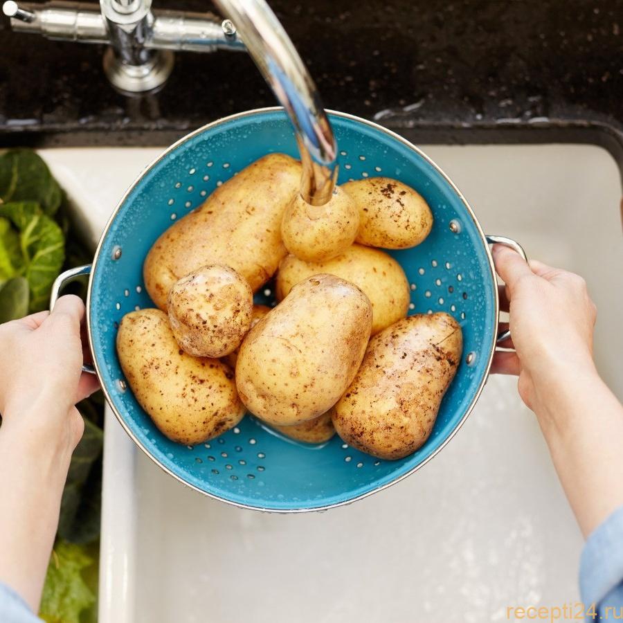 - Слегка промойте бейби-картофель в воде, при этом очищать его от кожуры не нужно.