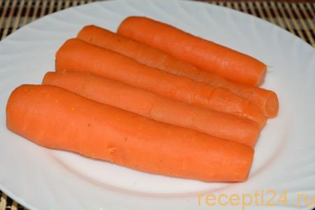 Как только морковка хорошо остыла, пора ее почистить. Снять тонкую кожицу можно острым ножом или специальной овощечисткой. Главное – чтобы это был очень острый предмет, не сминающий мягкую нежную морковную мякоть. Целую морковь намного легче будет шинковать.