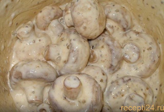 Некоторые хозяйки предпочитают сочетать грибы и сметанный маринад. К такому маринаду отлично подойдет базилик в качестве приправы. Грибы с такой пропиткой получаются очень вкусными и сочными.
