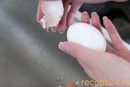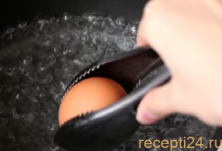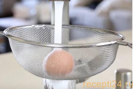 Варить после закипания воды на медленном огне в течение 2 – 3 минут. Переложите готовые яйца в холодную воду.