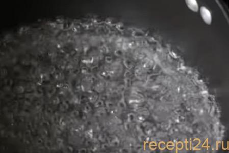 После закипания воды, тщательно размешайте её ложкой, так чтобы в центре кастрюли образовался водоворот.