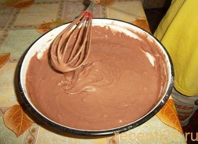 К жидкости добавить какао-порошок. За счет него десерт и приобретает красивый шоколадный окрас.