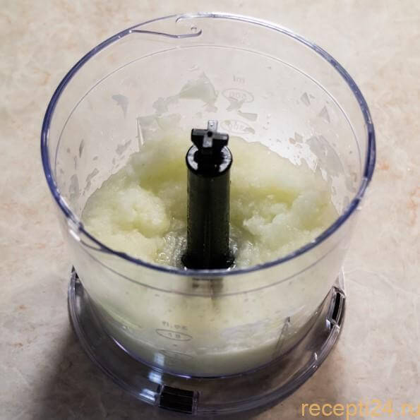 Очистить одну большую луковицу. Промыть под струей воды и измельчить при помощи блендера. В данном случае необходимо измельчать лук как можно мельче. Вы можете нашинковать лук вручную, но при помощи блендера сделать это получится значительно быстрее.