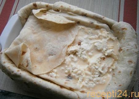 В оригинальном рецепте используют тонкое дрожжевое тесто. Формируют листы, которые перед приготовлением проваривают. Все это занимает много времени. Ачма из лаваша с сыром и творогом готовится максимально быстро и просто. Все ингредиенты уже готовы, нужно только собрать их в аппетитную закуску.