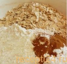 Cмешиваем муку, овсяные хлопья, соль, корицу и разрыхлитель.