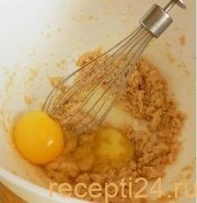 Взбиваем размягченное масло с сахаром, потом добавляем яйцо и ещё раз тщательно взбиваем.