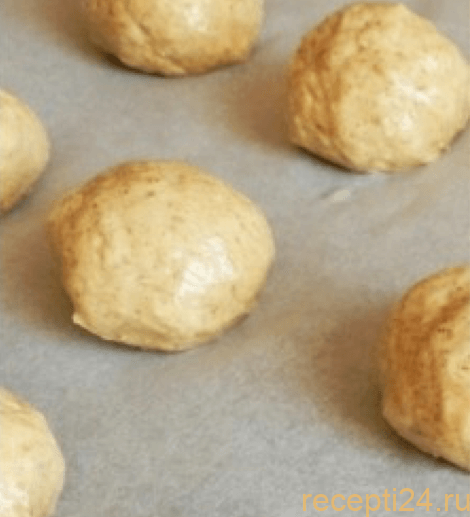 Разогреваем духовку до 190 градусов. Мокрыми руками из теста формируем шарики и выкладываем их на расстоянии друг от друга на устланный пергаментной бумагой противень. Выпекаем 12-15 минут.