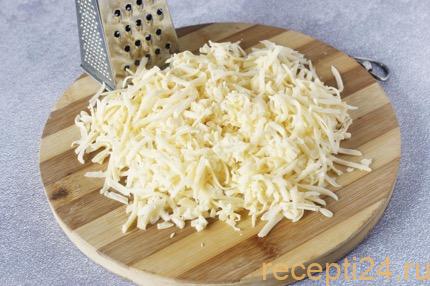 Сыр твердых сортов натирается на крупной терке.