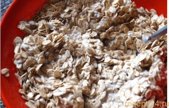 Пересыпать хлопья в глубокую миску и залить их указанным количеством кефира. Оставить набухать на 10-20 минут.