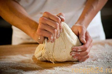Продолжаем вымешивать тесто руками, постепенно добавляя муку. Главное тесто не «затянуть», то есть не переборщить с мукой. Оно не должно липнуть к рукам, но при этом оставаться мягким.