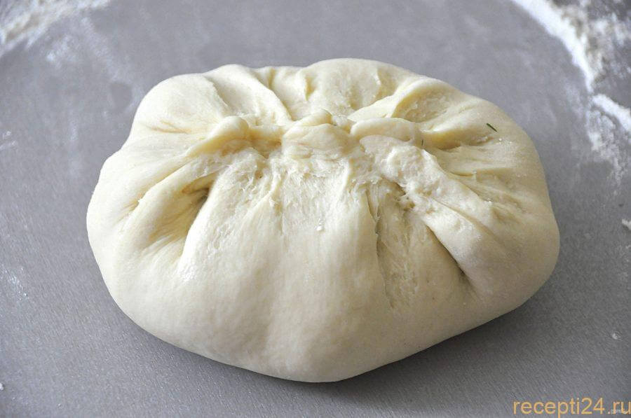 Поднимаем края теста и соединяем их в виде мешочка.