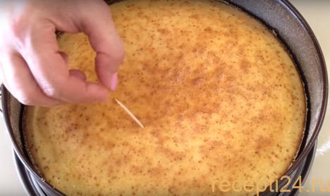 Готовность манника определяют так же, как и у подобных пирогов, куличей, кексов. Нужно просто проткнуть тесто деревянной шпажкой. Если она останется сухой, без прилипшего теста, значит пирог готов. Он должен хорошо подрумяниться.