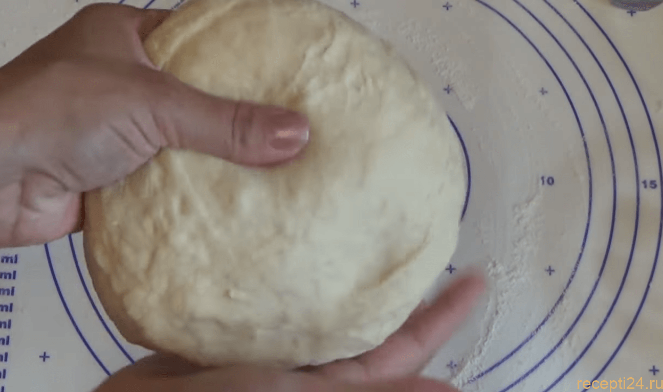 Посыпьте на стол немного муки, и теперь начинайте разминать тесто. Делайте это до получения мягкого теста, еще оно должно перестать липнуть к рукам. После этого оберните тесто пленкой, и уберите в темное теплое место на 40 минут.