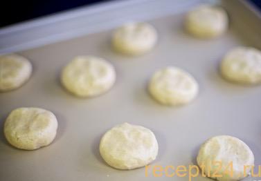 Смоченными в воде руками формируем из теста небольшие шарики, выкладываем их на силиконовый коврик или пергаментную бумагу и слегка придавливаем сверху ладонью. Выпекаем 20 мин в предварительно разогретой до 180 градусов духовке. Готово! Можем подавать наши печеньки к столу!