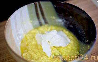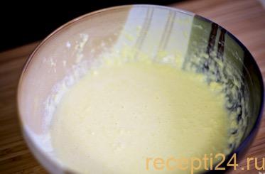 Соединяем яичную и масляную смеси, вымешиваем их до однородности.