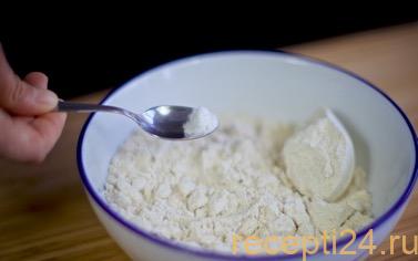 Готовим сухую смесь: просеиваем пшеничную муку, добавляем к ней овсяную муку и разрыхлитель.