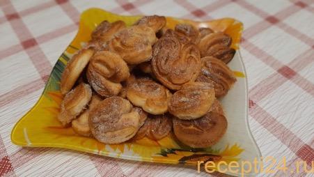 Печенье выпекается в духовке, разогретой до 200 градусов, около 15-20 минут (в зависимости от духовки). Получается результат, внешне напоминающий маленькие плюшки.