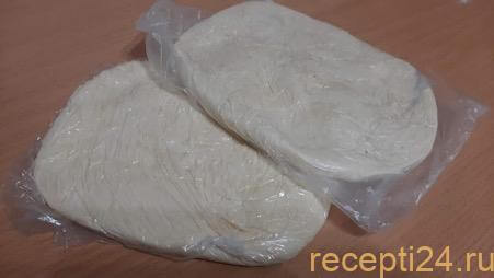 Полученное тесто нужно разделить на две ровные части, уложить в пакеты и отправить в холодильник на час.