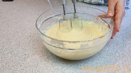 Взбивать в течение 10 минут. Должна получиться хорошая устойчивая масса бело-желтого цвета.
