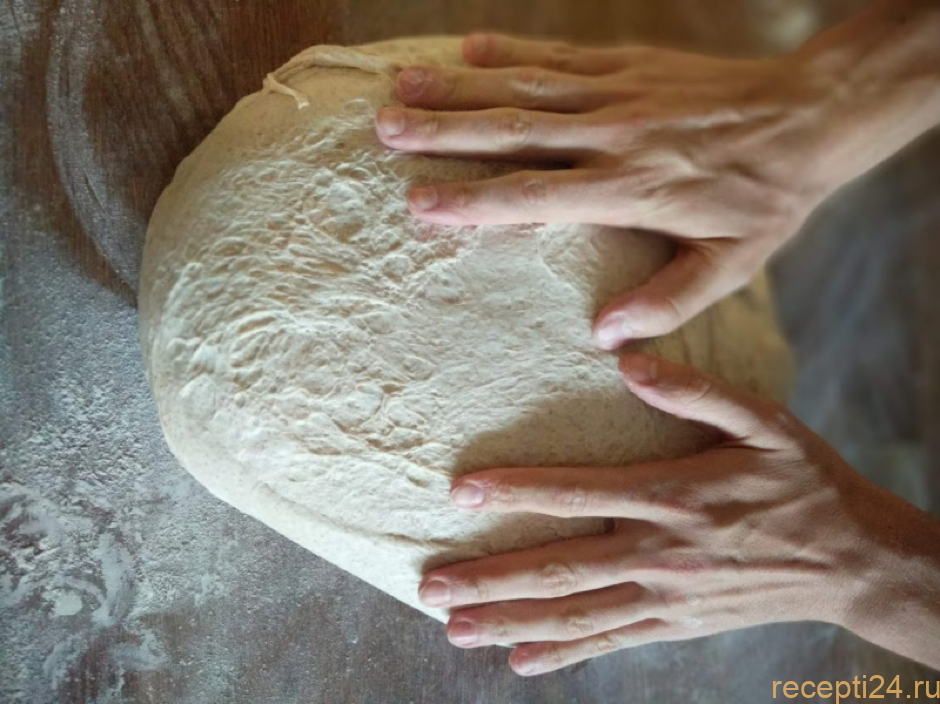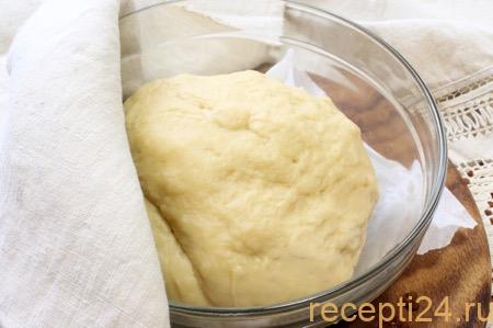 Замесить эластичное тесто. Хорошо вымесить на поверхности. Оно не должно приставать к рукам.