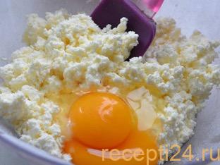 Вкусовые качества начинки прежде всего зависят от творога. Если брать его прямо из упаковки, то в готовой выпечке зёрна могут сильно ощущаться, поэтому рекомендуется предварительно отправить творог в блендер на 1 минуту. Так вы получите мягкую творожную массу. Вмешиваем в неё желток, сахар, муку и сметану. Накрываем миску с начинкой пищевой плёнкой и убираем в холодильник.