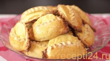 Смазываем противень растительным маслом, либо же выстилаем на него бумагу для выпечки. Сверху укладываем «пирожки» и отправляем в разогретый до 180 C духовой шкаф.