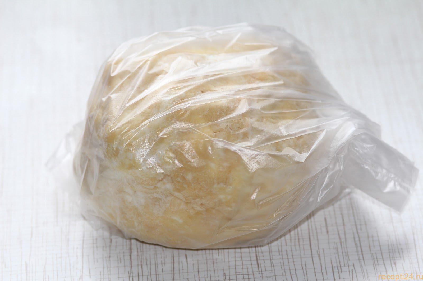 Две массы необходимо соединить между собой для получения теста. Его консистенция должна быть тягучей и липкой. Заворачиваем его в целлофановый пакет и отправляем в холодильник на 40-50 минут.