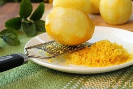 С апельсина или лимона натирается цедра. Делается это при помощи мелкой терки, как на драники.